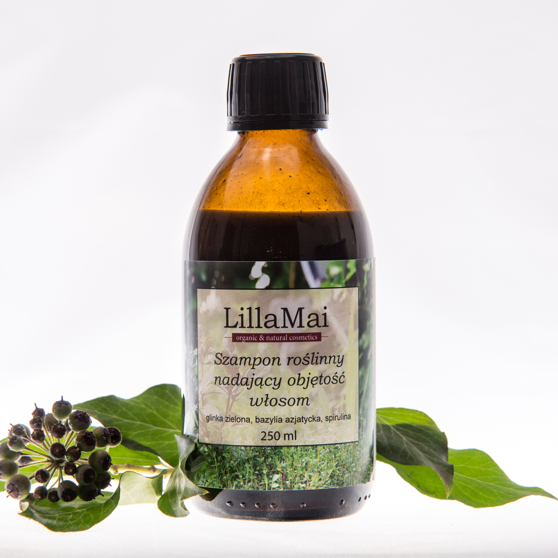 Szampon zrobiony na wysokoskoncentrowanym naparze ziołowym z pokrzywy i mydlnicy lekarskiej, z dodatkiem glinki zielonej, bazylii azjatyckiej, ekstraktu ze spiruliny i fitokeratyny.